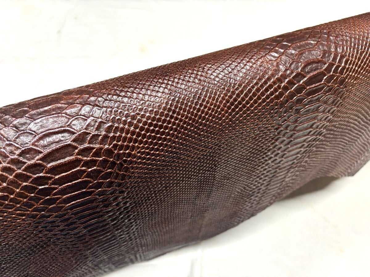 イタリア製 ゴートレザー生地 ベジタブルタンニン革素材 ヘビ柄エンボス 型押し 本革 山羊革