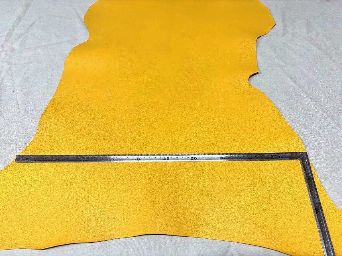 高品質なゴートレザーを使用した、レザークラフト愛好者に最適な素材です。鮮やかな黄色が華やかさを演出し、様々な作品に彩りを添えます。