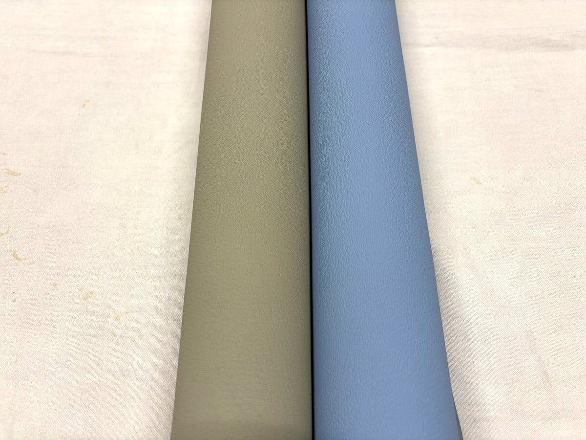 「シュリー マット Campanule」。つや消し(マット)仕上げならではの落ち着いた表情と、繊細で美しいシボが魅力の本革素材です。